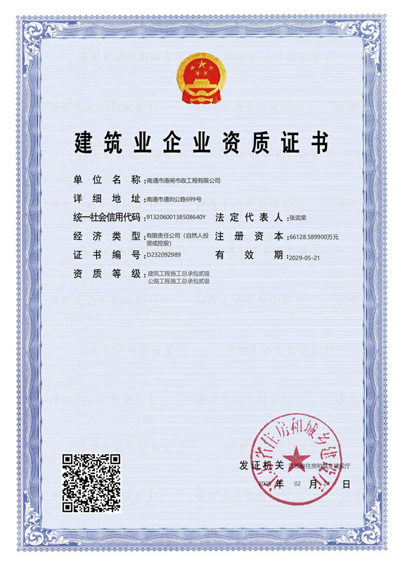 建筑業(yè)企業(yè)資質(zhì)證書(市政公用工程施工總承包壹級(jí))