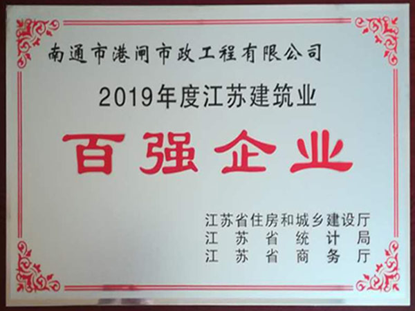 2019年度江蘇建筑業(yè)百強企業(yè)
